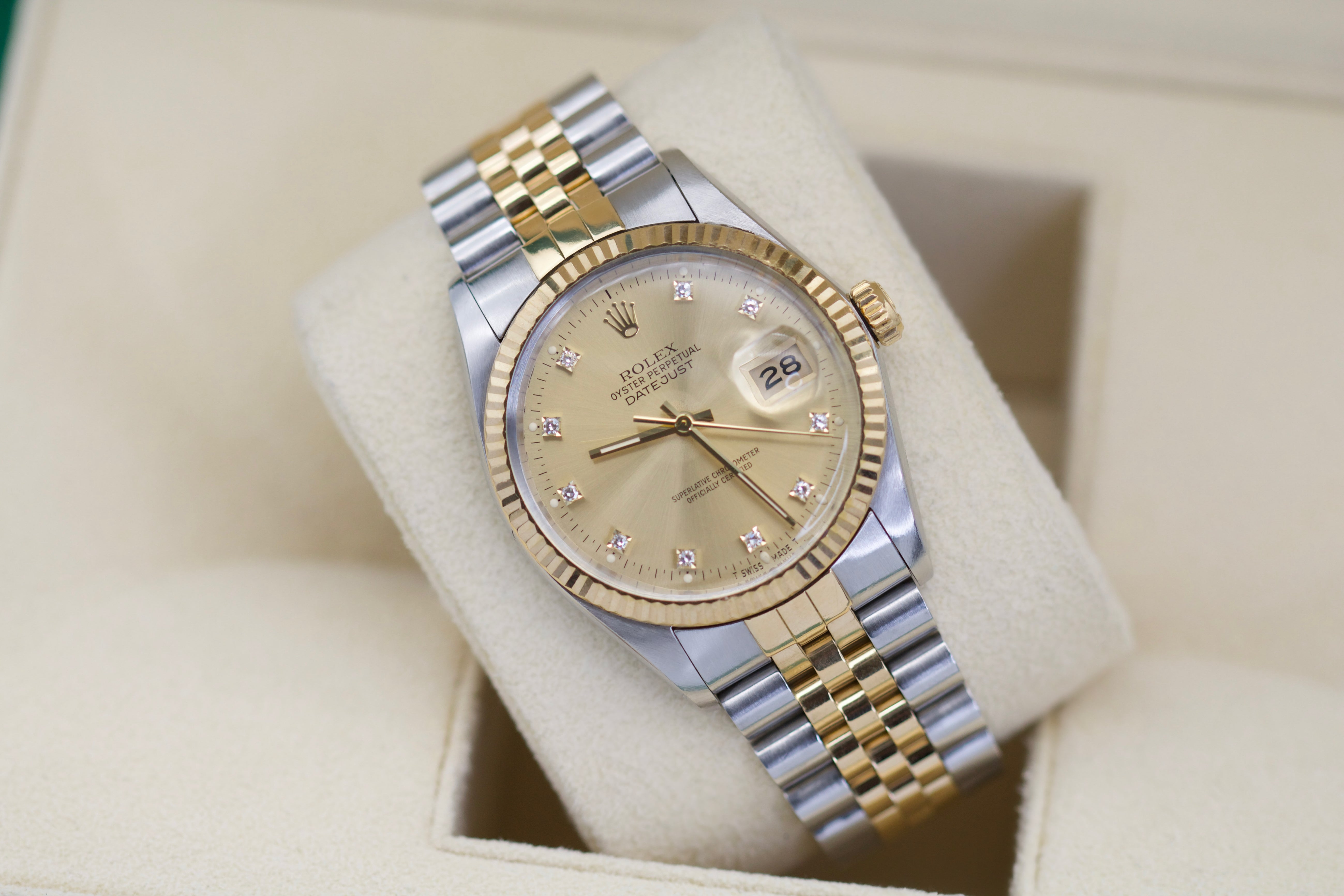 Rolex DateJust 36mm Two Tone med Diamanter - med Garanti